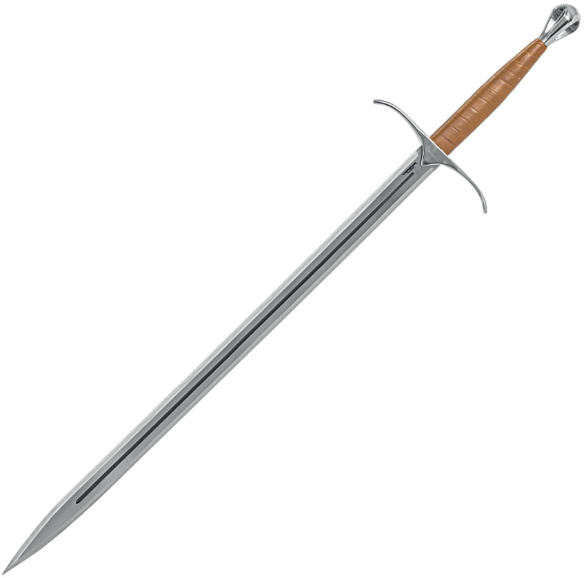 39″ (99.06cm) overall. 30″ (76.2cm) polished convex edge 1075HC steel blade. Steel guard and pommel. Leather wrapped walnut handle. Brown leather scabbard. Sales Restriction: No Amazon.com Sales.
