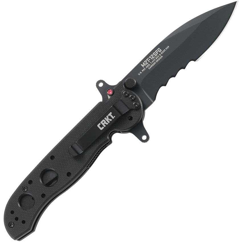 4.25″ (10.8cm) closed. 3.12″ (7.92cm) black powder coated Veff serrated 1.4116 stainless spear point blade. Black G10 handle. Extended tang. Thumb stud. Pocket clip. Boxed.