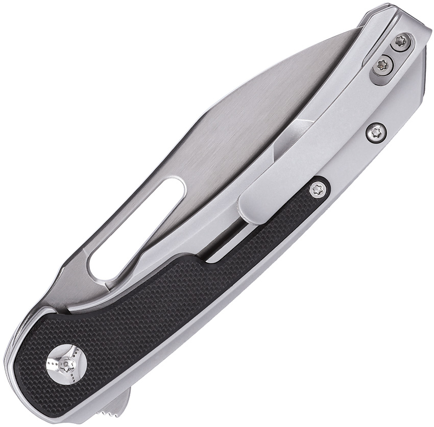 4.13″ (10.49cm) closed. 3″ (7.62cm) satin finish 14C28N Sandvik stainless blade. Satin finish stainless handle with black G10 onlay. Extended tang. Thumb pull. Pocket clip. Boxed.