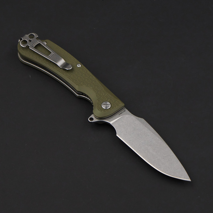 4.63″ (11.76cm) closed. 3.5″ (8.89cm) stonewash finish 8Cr14MoV stainless blade. Olive textured FRN handle. Extended tang. Glass breaker. Pocket clip. Boxed.