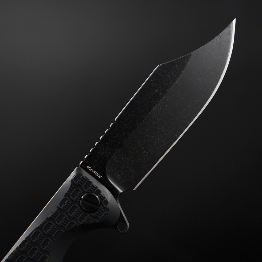 4.5″ (11.43cm) closed. 3.25″ (8.26cm) black stonewash finish 8Cr14MoV stainless clip point blade. Black textured ABS handle. Extended tang. Glass breaker. Pocket clip. Lanyard hole. Boxed.