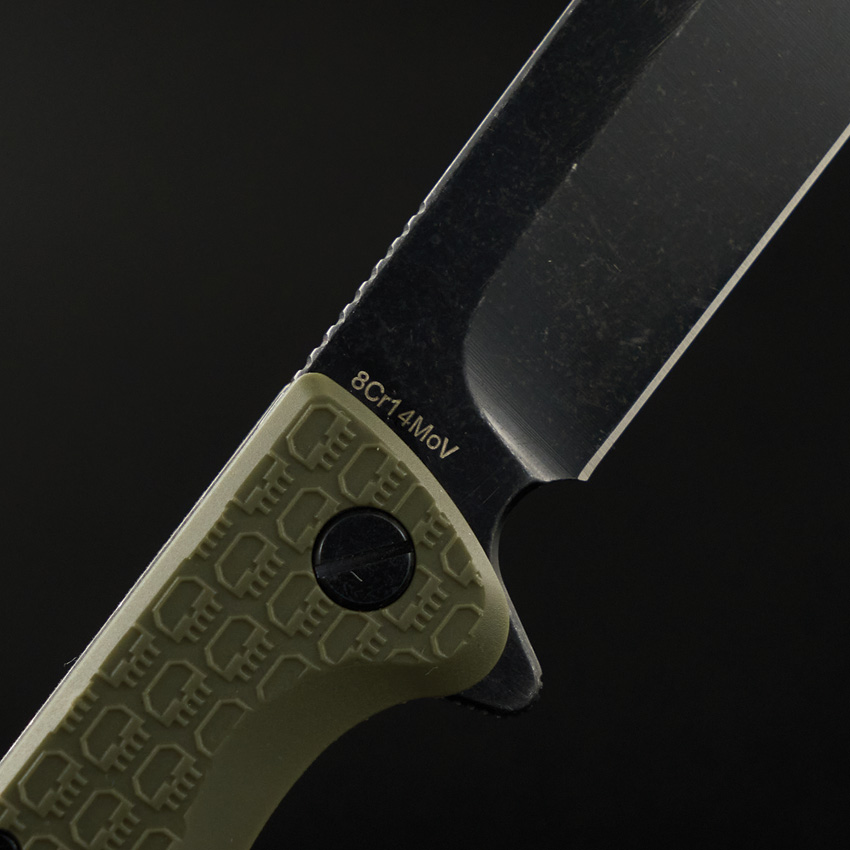 5.88″ (14.94cm) closed. 4.88″ (12.4cm) black stonewash finish 8Cr14MoV stainless clip point blade. OD green textured ABS handle. Extended tang. Lanyard hole. Pocket clip. Boxed.