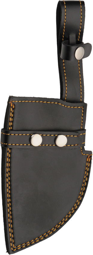 11.75″ (29.85cm) overall. 6.75″ (17.15cm) Damascus steel cleaver style blade. Blue and brown wood handle. Full tang. Brown leather belt sheath. Boxed.