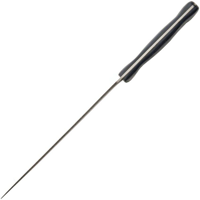 12.5″ (31.75cm) overall. 7.5″ (19.05cm) Damascus steel fillet blade. Black and white micarta handle. Full tang. Lanyard hole. Boxed.