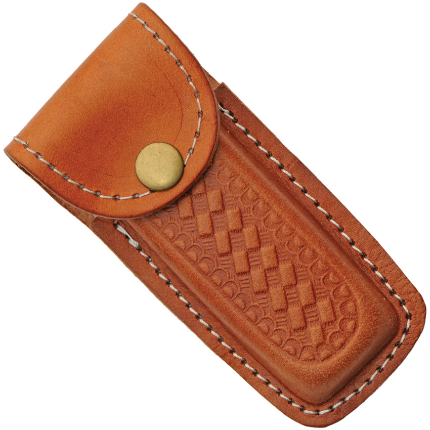 4.25″ (10.8cm) closed. 3.5″ (8.89cm) Damascus steel clip point blade. Blue pakkawood handle. Stainless bolster(s). Lanyard hole. Brown leather belt sheath. Boxed.