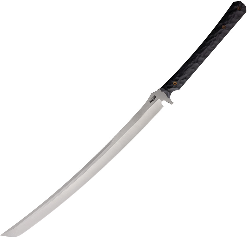 29″ (73.66cm) overall. 19″ (48.26cm) satin finish CPM MagnaCut stainless tanto blade. Black and gray G10 handle. Full tang. Black Kydex belt sheath. Bulk packed.
