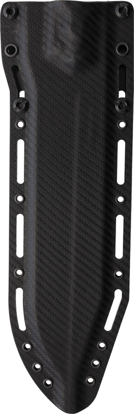14″ (35.56cm) overall. 8.5″ (21.59cm) Midnight finish CPM MagnaCut stainless blade. Black and white sculpted G10 handle. Full, extended tang. Lanyard hole. Black Kydex belt sheath. Bulk packed.
