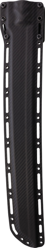 26″ (66.04cm) overall. 16″ (40.64cm) satin finish CPM MagnaCut stainless blade. Black and red sculpted G10 handle. Full tang. Samurai style blade. Carbon fiber Kydex MOLLE compatible belt sheath. Bulk packed.