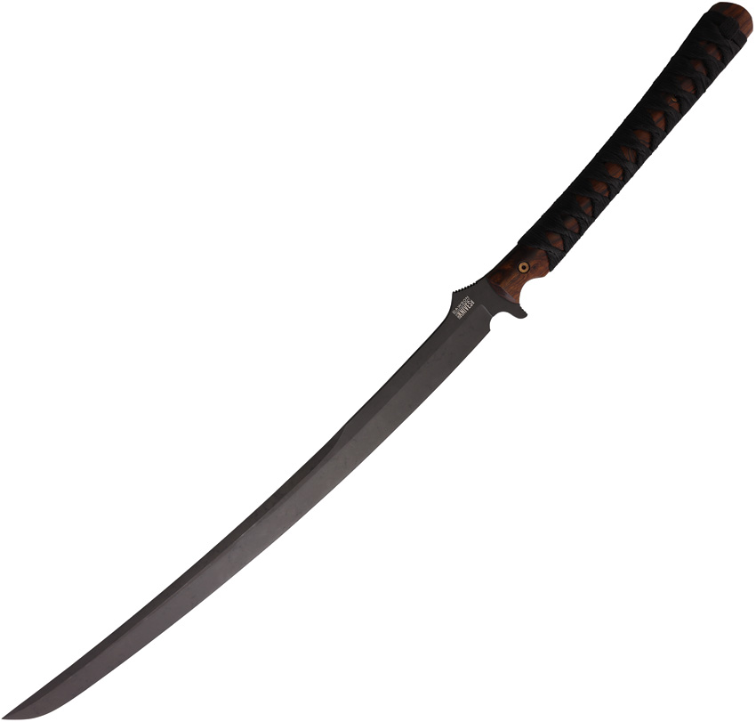 31.25″ (79.38cm) overall. 20.5″ (52.07cm) black Apocalyptic finish CPM-3V carbon steel blade. Black cord wrapped Arizona ironwood handle. Brown leather and Kydex scabbard. Bulk packed.