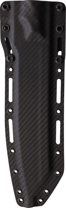 13″ (33.02cm) overall. 7.38″ (18.75cm) Monsoon finish CPM MagnaCut stainless blade. Black and red sculpted G10 handle. Full, extended tang. Lanyard hole. Black Kydex belt sheath. Boxed.