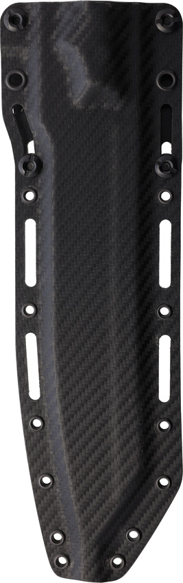 13″ (33.02cm) overall. 7.38″ (18.75cm) Midnight finish CPM MagnaCut stainless blade. Black and red sculpted G10 handle. Full, extended tang. Lanyard hole. Black Kydex belt sheath. Boxed.