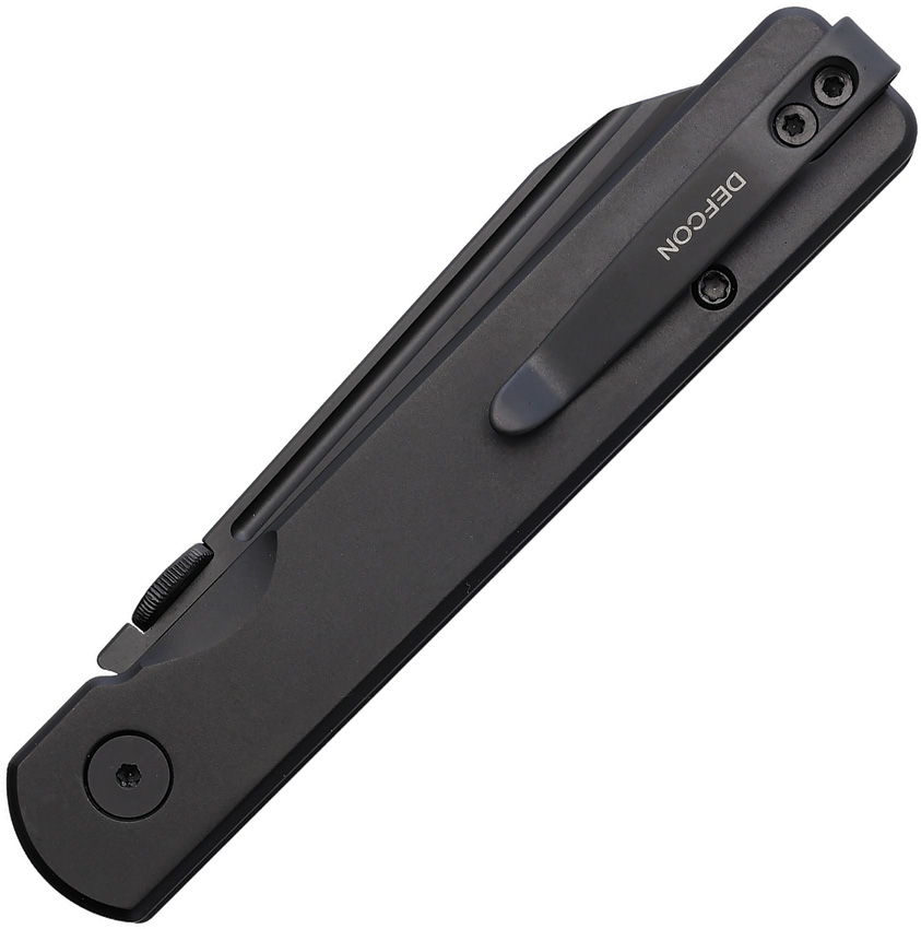 4.13″ (10.49cm) closed. 3″ (7.62cm) black finish 14C28N Sandvik stainless reverse tanto blade. Black aluminum handle. Thumb disk. Pocket clip. Boxed.