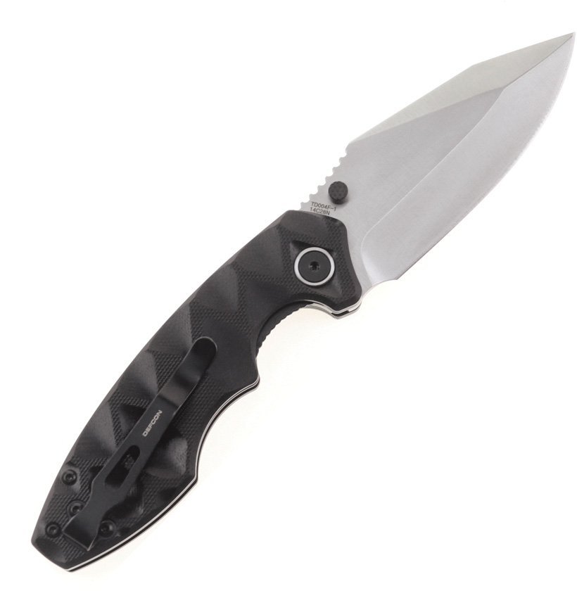 4.38″ (11.13cm) closed. 3.25″ (8.26cm) satin finish 14C28N Sandvik stainless blade. Black sculpted G10 handle. Thumb stud. Pocket clip. Boxed.