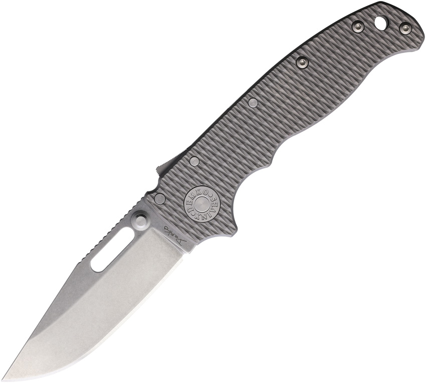 4.75″ (12.07cm) closed. 2.88″ (7.32cm) stonewash finish CPM-3V stainless clip point blade. Milled titanium handle. Thumb pull. Extended tang. Pocket clip. Comes in plastic case.