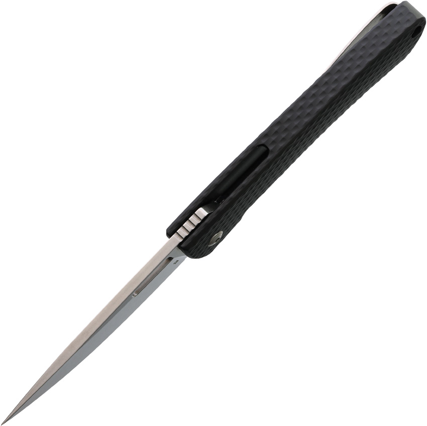 4.25″ (10.8cm) closed. 3.25″ (8.26cm) stonewash finish D2 tool steel blade. Black textured aluminum handle. Extended tang. Lanyard hole. Pocket clip. Glass breaker. Thumb pull. Boxed.