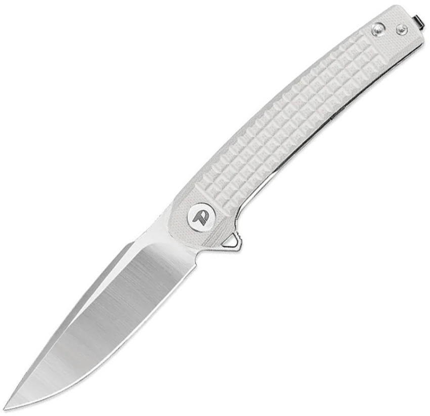 4.25″ (10.8cm) closed. 3.13″ (7.95cm) satin finish D2 tool steel drop point blade. White frag pattern G10 handle. Extended tang. Pocket clip. Boxed.