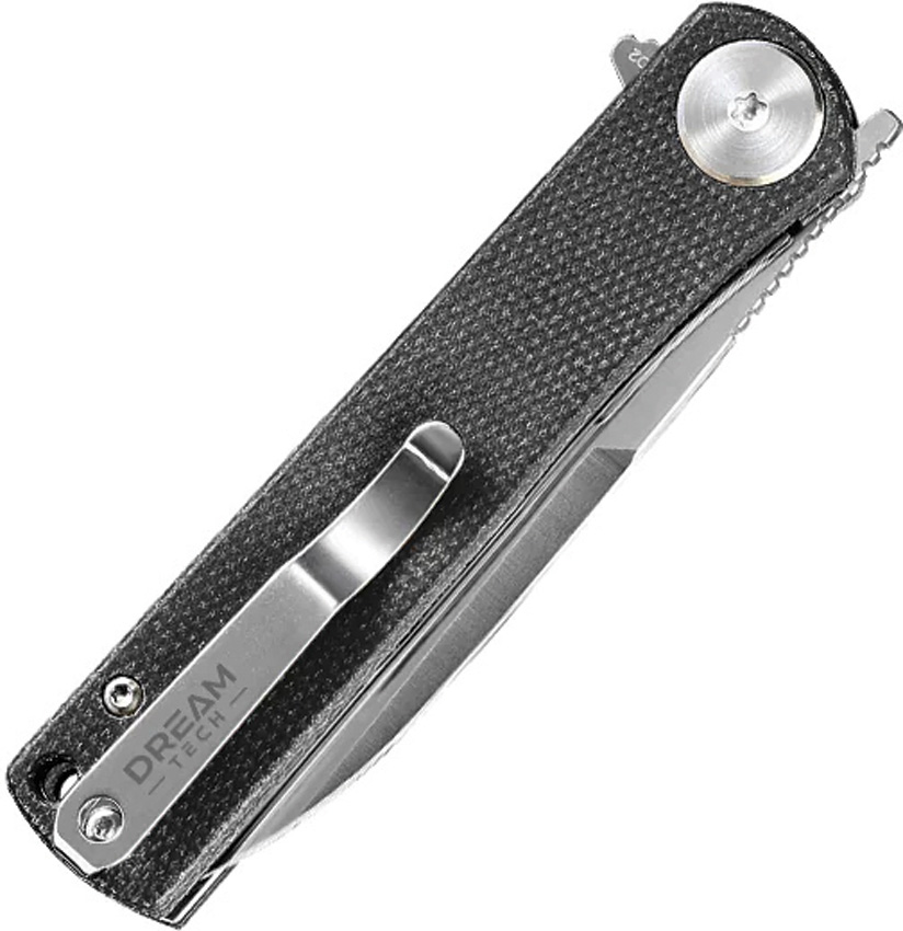 4.25″ (10.8cm) closed. 3.25″ (8.26cm) satin finish D2 tool steel drop point blade. Black micarta handle. Extended tang. Lanyard hole. Pocket clip. Boxed.