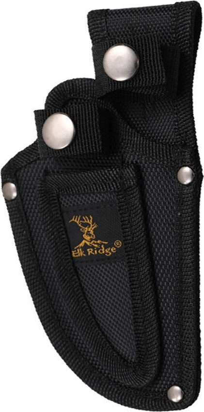 Black finish 3Cr13MoV stainless blade. Green camo ABS handle. Full tang. Includes 7″ overall caping with 3.25″ upswept blade and 6.75″ overall guthook with 4″ blade and finger ring. Black nylon belt sheath. Boxed.