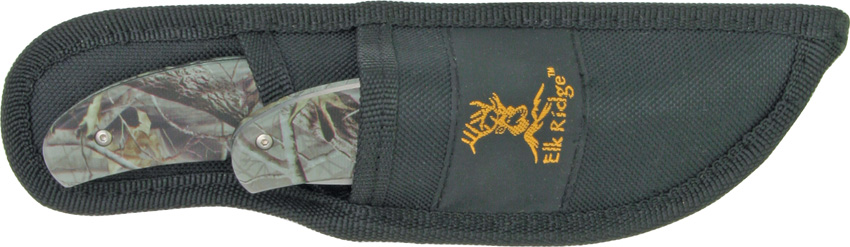 Stainless blade. Camo aluminum handle. Includes an 8″ overall guthook hunter with 3.5″ blade and a 4.5″ closed companion lockback. Black nylon belt sheath. Boxed.