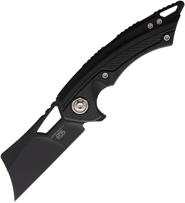 5″ (12.7cm) closed. 3.25″ (8.26cm) black coated CPM S90V stainless blade. Black titanium handle with carbon fiber onlay. Extended tang. Lanyard hole. Pocket clip. Thumb pull. Boxed.