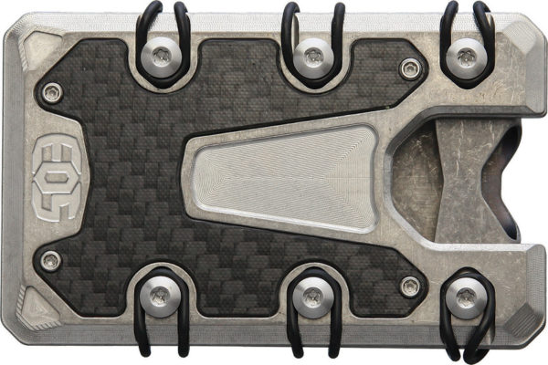 Dimensions: 3.5″ x 2.25″. Stonewash finish. Carbon fiber inlay. RFID blocking. Built-in bottle opener. Held together by 6 O-rings that provide constant tension on cards. Deep carry money clip. Titanium construction. Bulk packed.
