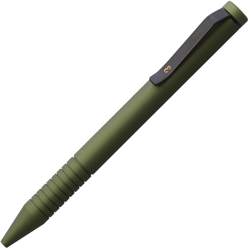 5.13″ overall. Pocket clip. Comes with (1) black .7mm Everyman Grafton refill cartridge. Uses Fisher Space Pen refills (Medium, Fine or Bold) along with Parker ballpoint or gel refills. Aluminum construction. Color: Matte OD green. Boxed.