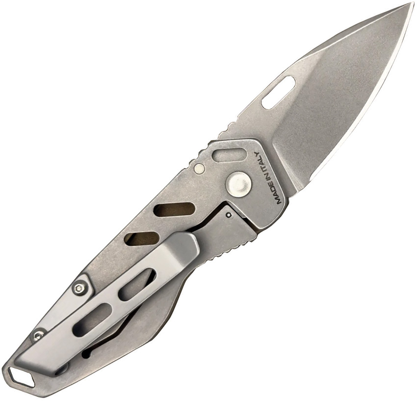 3″ (7.62cm) closed. 1.88″ (4.78cm) stonewash finish Bohler N690 stainless drop point blade. Tactical mud aluminum handle with Gray stainless back handle. Thumb pull. Lanyard hole. Pocket clip. Boxed.