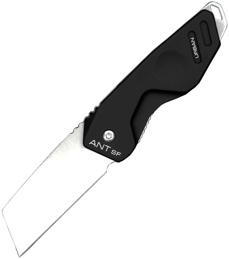 3″ (7.62cm) closed. 2″ (5.08cm) satin finish Bohler N690 stainless sheepsfoot blade. Black anodized aluminum handle with Satin stainless back handle. Lanyard hole. Pocket clip. Boxed.