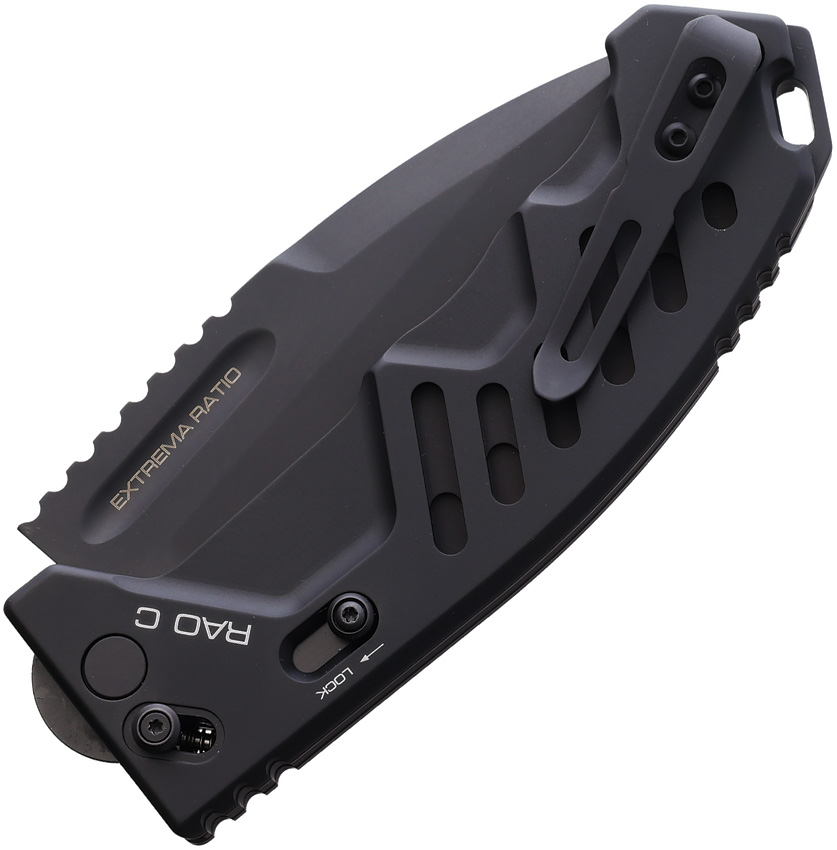 5.13″ (13.03cm) closed. 4″ (10.16cm) black MIL-C-13924 burnished Bohler N690 stainless drop point blade. Black anodized aluminum handle. Lanyard hole. Pocket clip. Boxed.