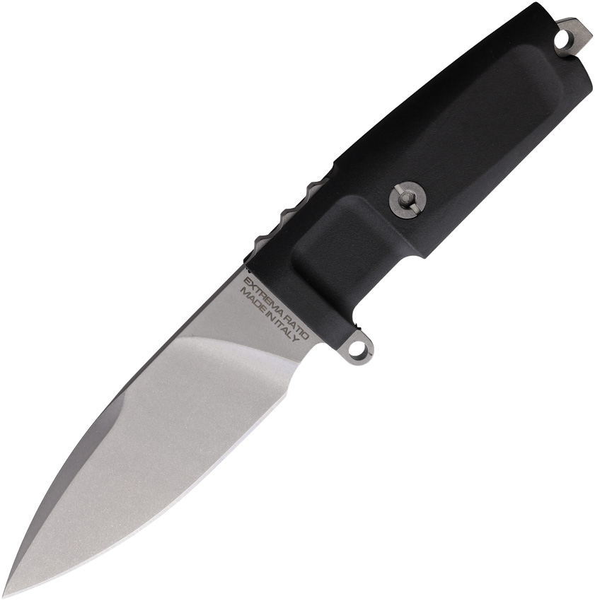 8.5″ (21.59cm) overall. 4.25″ (10.8cm) stonewash finish Bohler N690 stainless blade. Black Forprene handle. Full, extended tang. Lanyard hole. The included hard sheath can be worn vertically, horizontally or obliquely (at a 45¡ angle). Boxed.