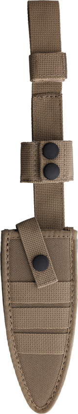 11.25″ (28.58cm) overall. 6.25″ (15.88cm) Bohler N690 stainless blade. Desert tan Forprene handle. Lanyard hole. Full, extended tang. Dark stone finish blade. Tan nylon MOLLE compatible belt sheath. Boxed.
