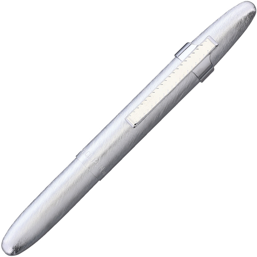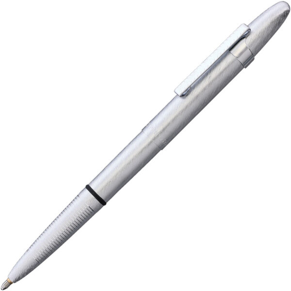 Pocket clip. 3.75″ closed. PR4 black ink, medium point cartridge. Writes upside down, at any angle, under water, over grease, and in extreme temperatures. Color: Brushed chrome. Boxed. Sales Restriction: No Amazon.com Sales.