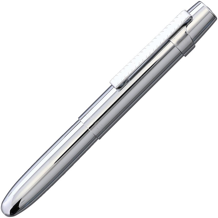 Pocket clip. 3.75″ closed. PR4 black ink, medium point cartridge. Writes upside down, at any angle, under water, over grease, and in extreme temperatures. Color: Chrome. Flat top. Boxed. Sales Restriction: No Amazon.com Sales.