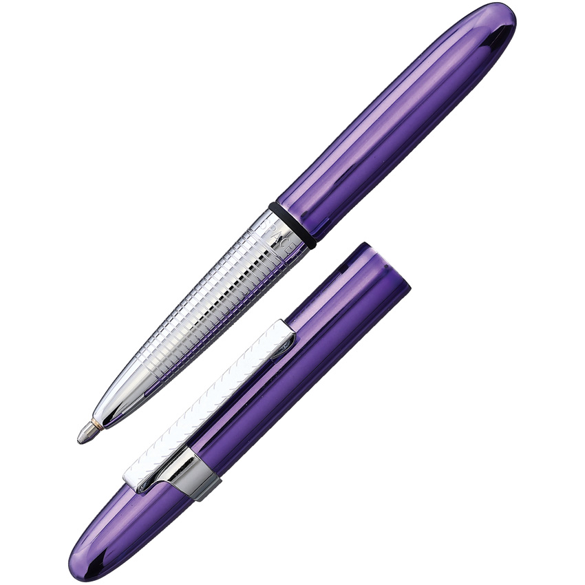 Pocket clip. 3.75″ closed. PR4 black ink, medium point cartridge. Writes upside down, at any angle, under water, over grease, and in extreme temperatures. Color: Purple Haze. Boxed.