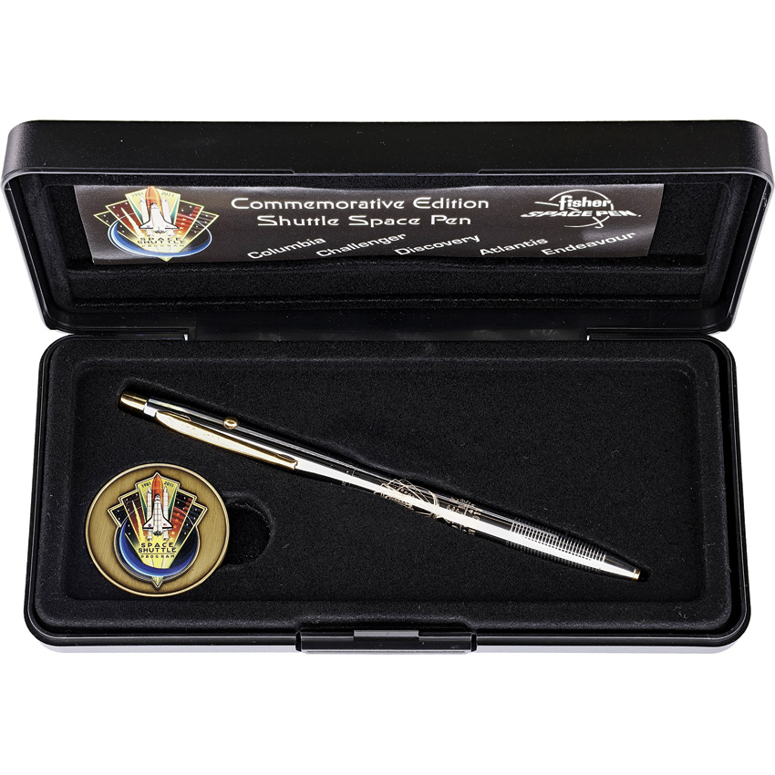 5.25″ overall. Pocket clip. PR4 black ink, medium point cartridge. Writes upside down, at any angle, under water, over grease, and in extreme temperatures. Color: Chrome with gold accents. Boxed.