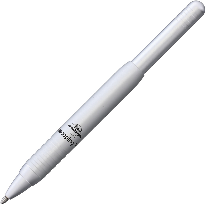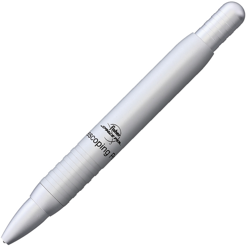 4.75″ overall. Smooth matte aluminum. PR4 black ink, medium point cartridge. Writes upside down, at any angle, under water, over grease, and in extreme temperatures. Pull to extend. Boxed.