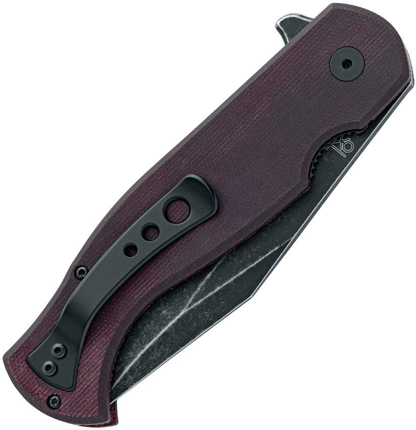 5.25″ (13.34cm) closed. 3.75″ (9.53cm) black stonewash finish CPM S90V stainless blade. Burgundy micarta handle. Extended tang. Pocket clip. Boxed.