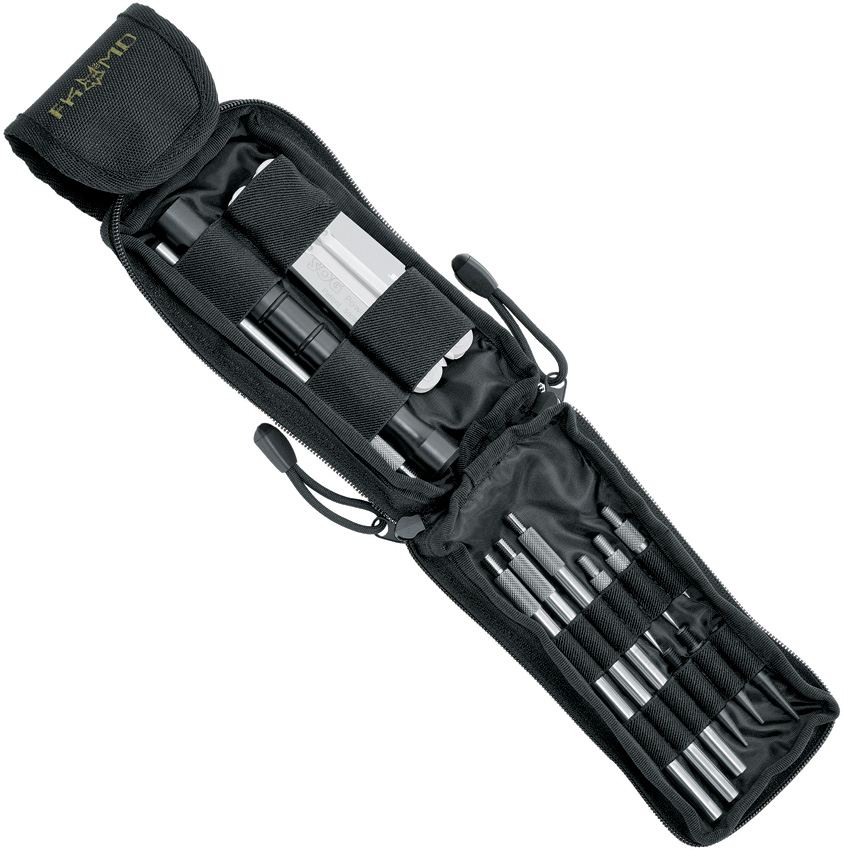 Includes: 6.29″ handle; (4) 5.5″ titanium sticks; (3) 1.57″ interchangeable titanium tips; (3) interchangeable POM tips; POM handle. Black 1000D nylon MOLLE compatible zippered carry case. E. O. D. Tool not included. Bulk packed.