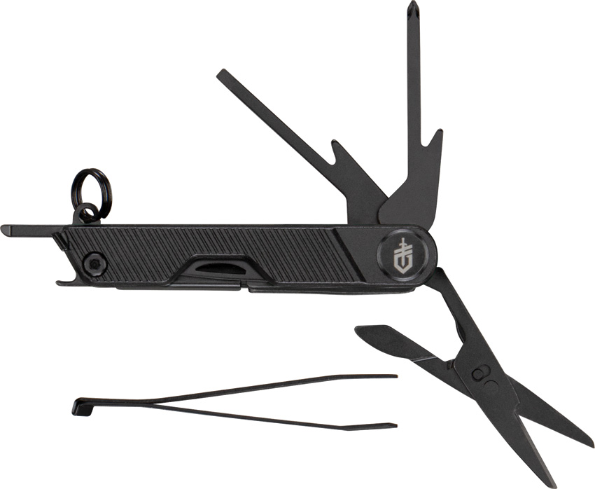 4.25″ overall. Black aluminum handles. Tools include: Small blade l Flat head screwdriver l Phillips screwdriver l Scissors l Tweezers l Bottle opener.