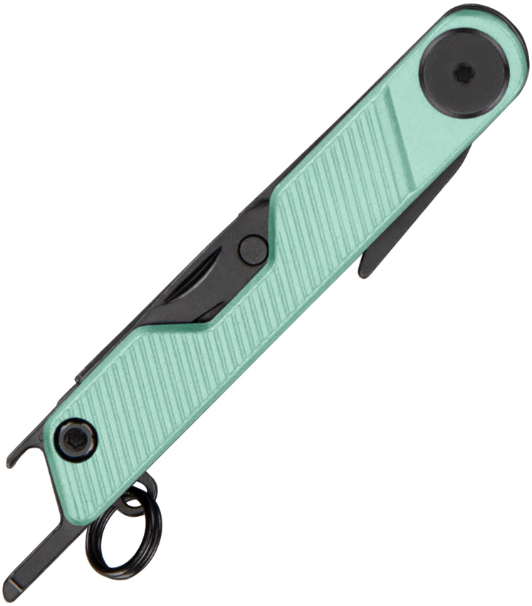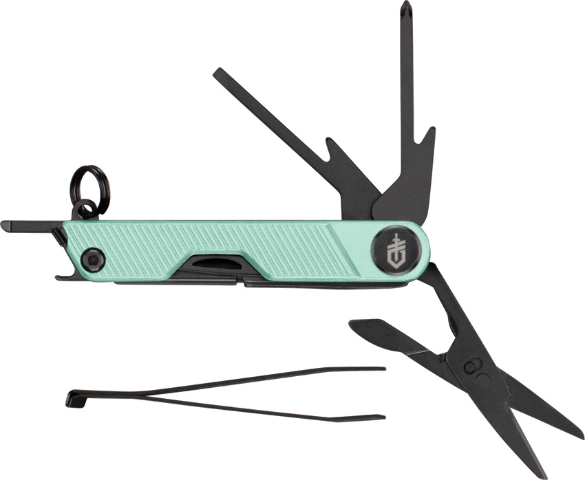 4.25″ overall. Mint green aluminum handles. Tools include: Small blade l Flat head screwdriver l Phillips screwdriver l Scissors l Tweezers l Bottle opener. Clam packed.