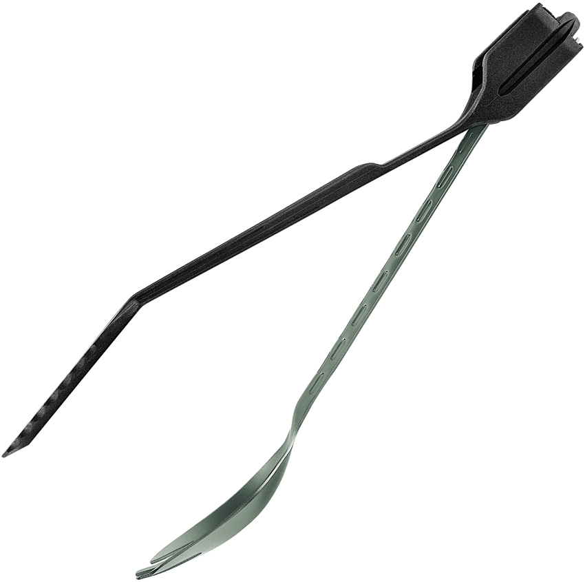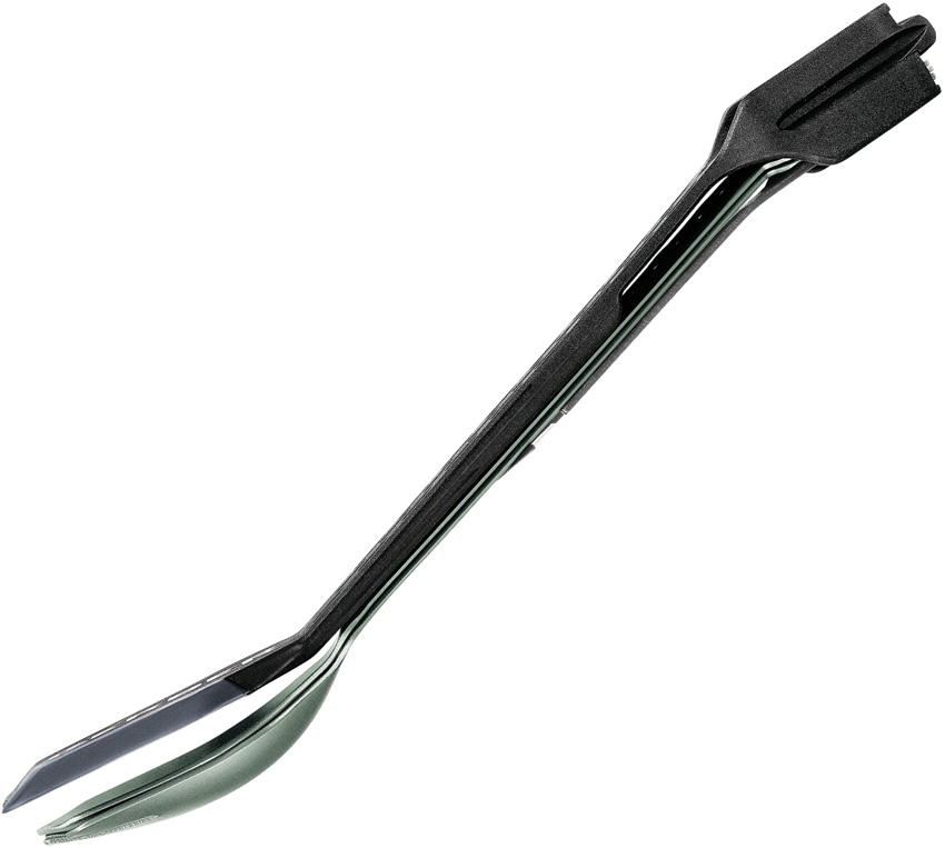 7.75″ overall. Includes: Dual sided plastic spatula; Long tine fork; Deep basin spoon, 4-function multi tool. Nesting. Aluminum construction. Color: Gray. Hang packaged.
