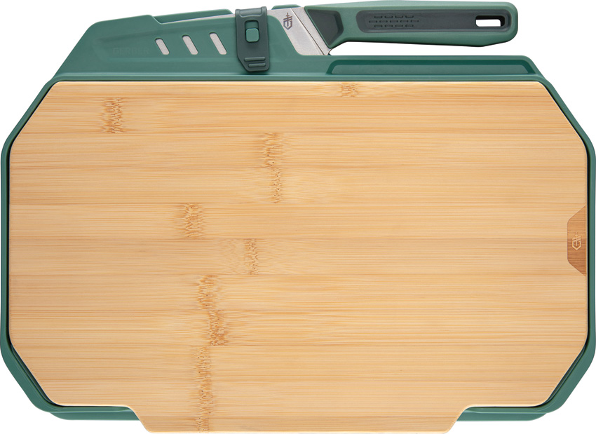 Includes: 14.4″ x 8″ bamboo cutting board; 14.8″ x 8.7″ polypropylene cutting board; 6″ Chef’s knife with 4116 stainless blade and rubberized polypropylene handle; Silicone retention strap. Two-sided cutting board with juice grooves. Hand wash recommended. Boxed with hanging tab.