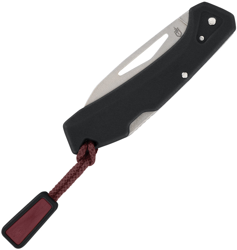 2.75″ (6.99cm) closed. 1.75″ (4.45cm) stonewash finish 440A stainless Wharncliffe blade. Black GFN handle. Lanyard hole. Thumb pull. English and French language packaging. Clam packed.