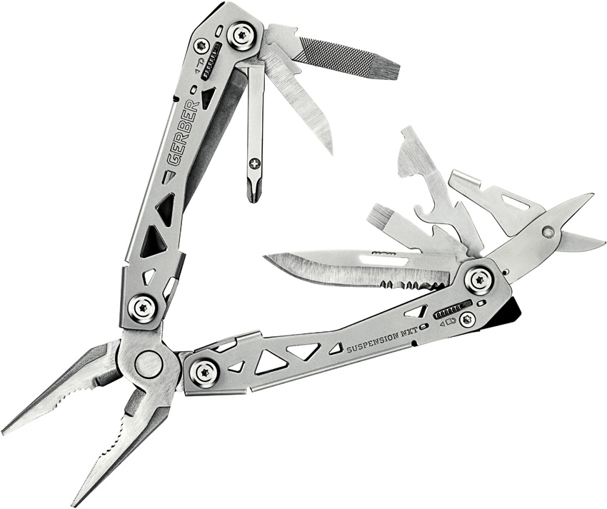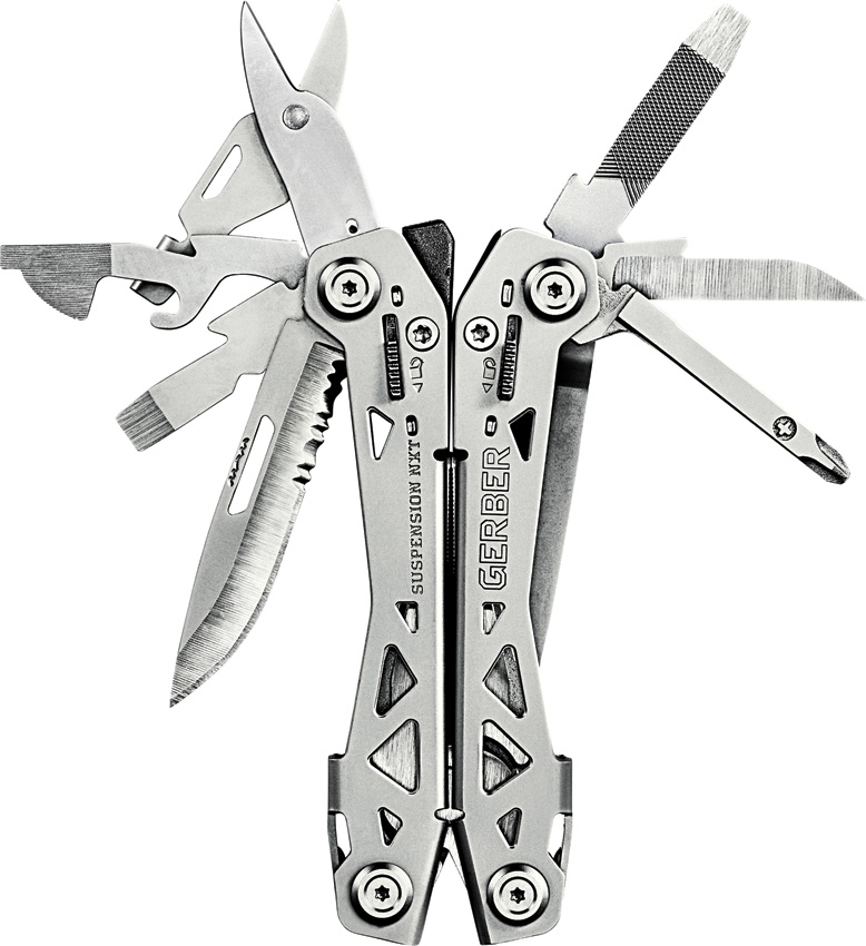4.25″ closed. 6.25″ overall. Stainless handles. Tools include: Needlenose pliers l Pliers l Wire cutter l Serrated blade l Scissors l Small screwdriver l Flat head screwdriver l Large screwdriver l Can opener l Bottle opener l Awl l File l Ruler l Wire stripper l Pocket clip. Real cross driver. Hang packaged.