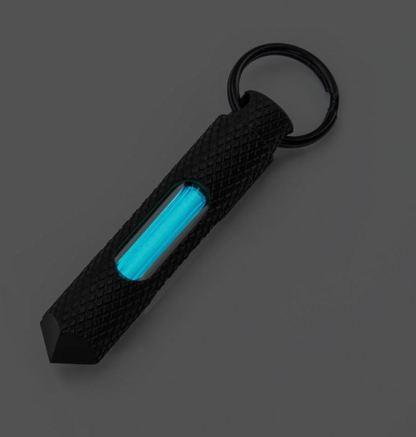 Glow Rhino Knurled Fob – Matte Black Steel with Blue Tritium