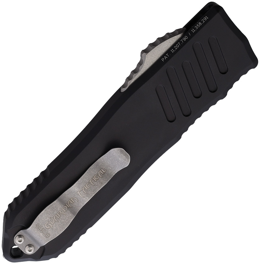 Automatic opening. 5.5″ (13.97cm) closed. 4″ (10.16cm) stonewash finish partially serrated Elmax steel spear point blade. Black aluminum handle. Glass breaker. Lanyard hole. Pocket clip. Boxed.