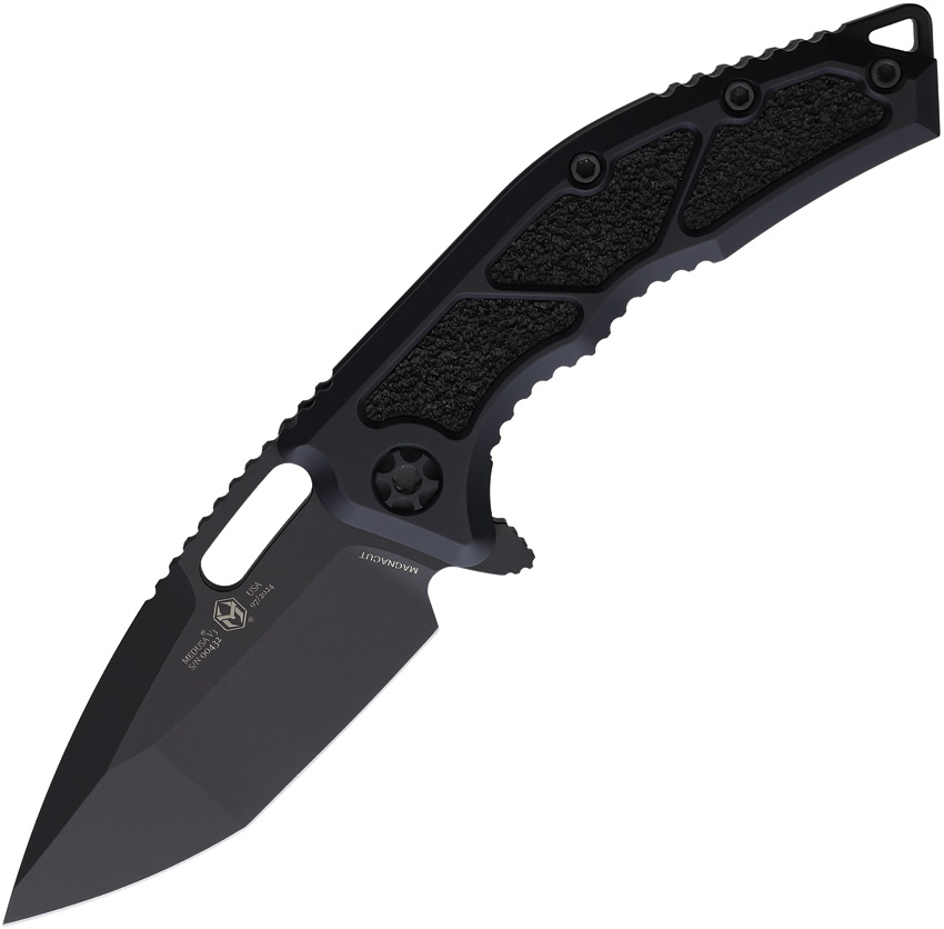 4.5″ (11.43cm) closed. 3″ (7.62cm) black DLC coated CPM MagnaCut stainless tanto blade. Black aluminum handle with black traction insert. Thumb pull. Extended tang. Lanyard hole. Pocket clip. Boxed.