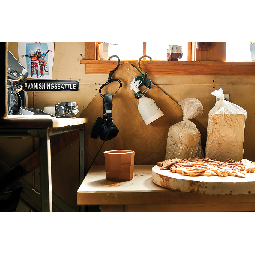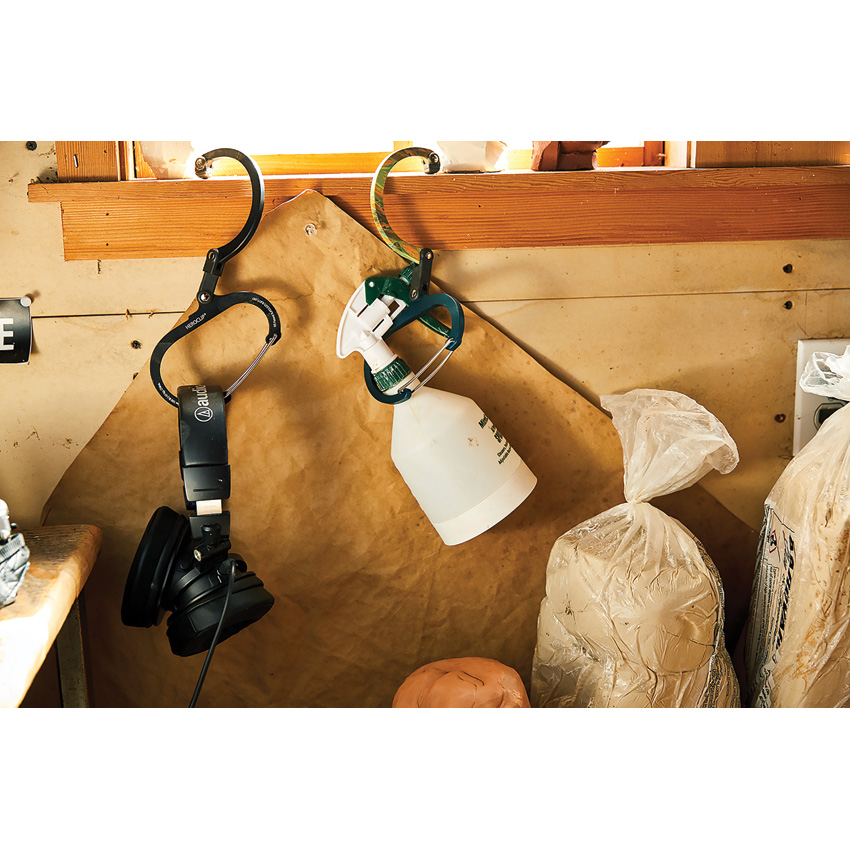 Dimensions: 4.1″ x 5.24″. Weight: 3.3oz. Rubber end cap. Hook securely hangs from nearly any surface. Folds up and down. Rotates 360 degrees. Wide gate. Folds and nests into carabiner form. Size: Large. Holds up to 100lbs. Color: Black. Hang packaged.
