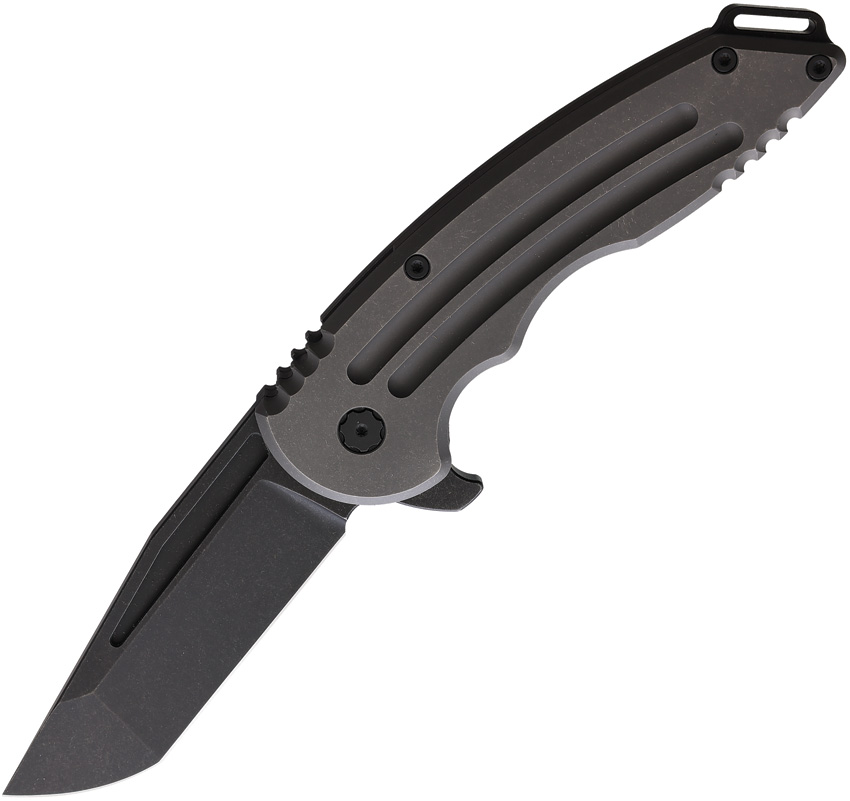 5.5″ (13.97cm) closed. 3.75″ (9.53cm) black DLC coated Nitro V steel tanto blade. Gray titanium handle. Extended tang. Lanyard hole. Pocket clip. Wooden storage box.