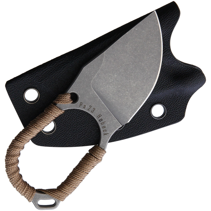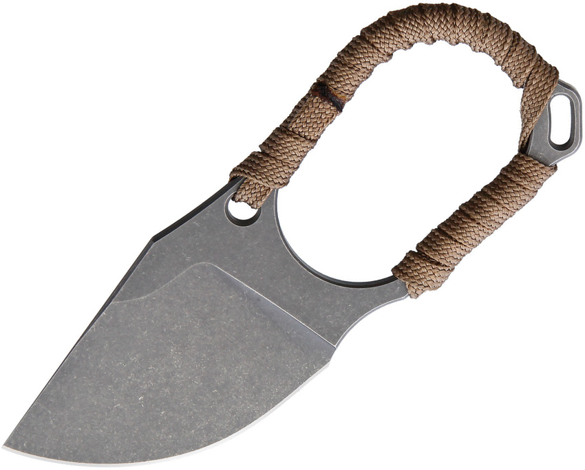 4″ (10.16cm) overall. 2″ (5.08cm) stonewash finish CPM-20CV stainless blade. Tan paracord wrapped handle. Lanyard hole. Finger hole cutout. Black Kydex sheath. Bulk packed.